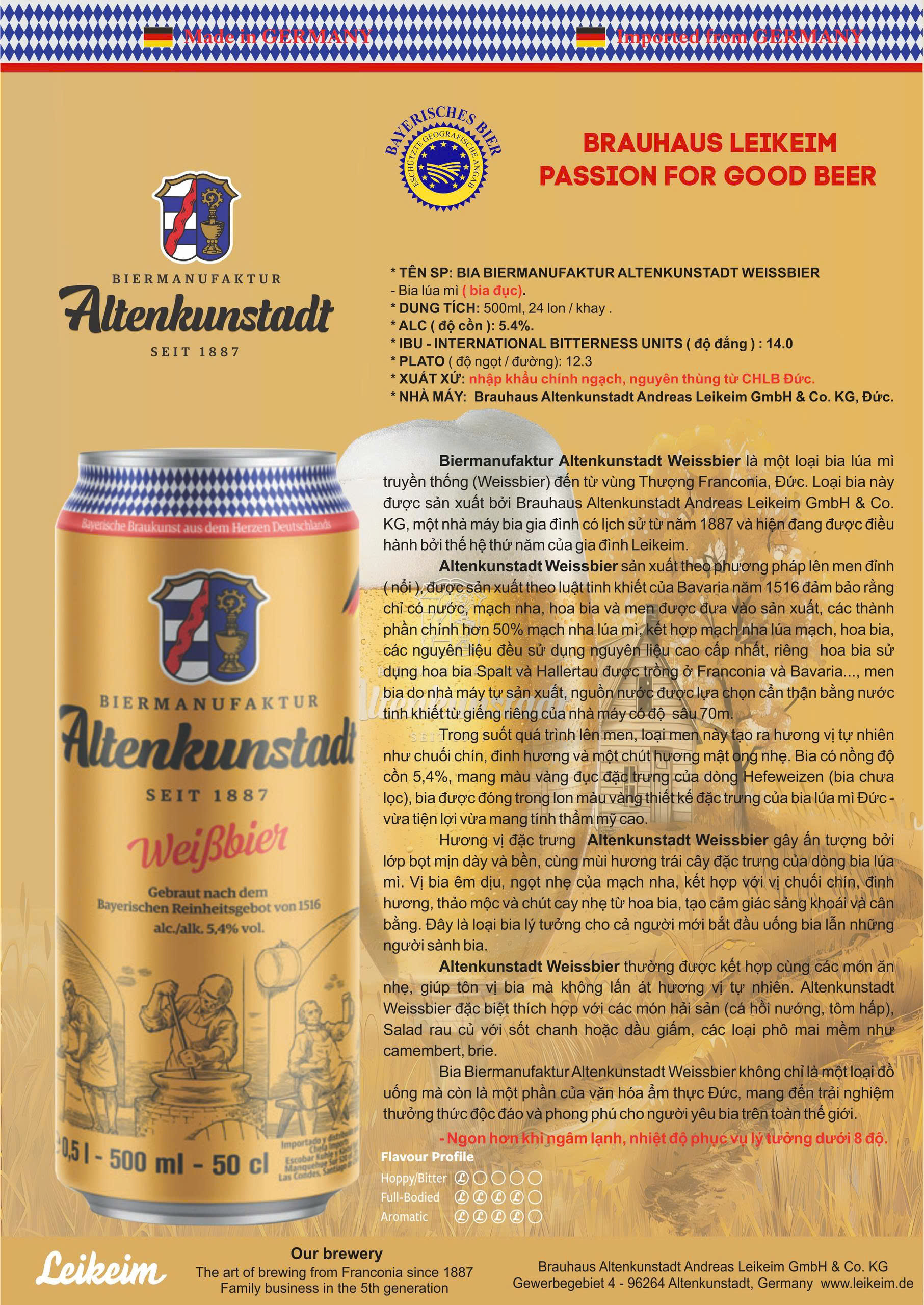 * NHÀ MÁY: Brauhaus Altenkunstadt Andreas Leikeim GmbH & Co. KG, Đức.