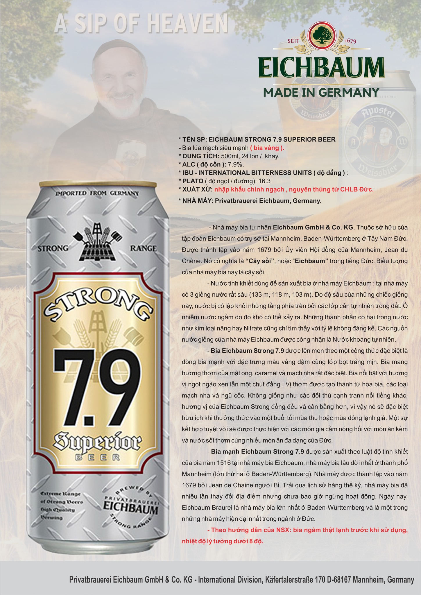 BIA EICHBAUM STRONG 7.9 - BIA ĐỨC LÚA MẠCH SIÊU MẠNH